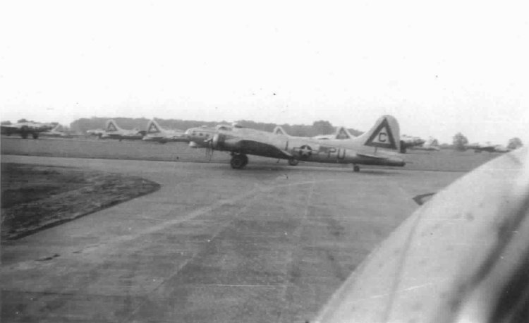 After leaving Paris the course parallels the Marne River for approximately 85 miles. This is the river that made headlines in the first war. In this war our troops under the command of General Patton only hesitated here and quickly drove on across it. The small city of Chateau Thierry is 6-1/2 miles left of course and on the Marne River. If it can be distinguished you will see the scene where very heavy fighting took place in World War I. Thirty miles beyond the Marne River the course crosses over the Aisne River and the large wooded area on its east bank is the Argonne Forest. It was in this area between St. Menehould and Verdun where many of our fathers remembered the last war all too well. VERDUN: Verdun is situated on the Neuse River, 25 miles South of the Belgian border. In World War I it was the scene of a great battle to stop the German drive on Paris. In this war it was an important supply center for the 12th Army Group. METZ: Metz, on the Moselle River, has been the most strongly fortified city on the continent since ancient times. This Group attacked Metz and area 3 times in 1944. One attack in the area was in direct support of the ground forces of the 3rd Army in storming this fortress. One of our best marshalling yard bombing occurred here. SAARBRUCKEN: Saarbrucken is the first town on our route in old Germany. With a population of 130,000 it is the largest city in the Saar area. This is an important marshalling yard and R.R. workshops location. Consequently it was the target for this Group three times in 1944. It is a point on the Siegfried line and the dragon teeth (tank obstacles) may be visible. ZWEIBRUCKEN: Zweibrucken is a small city of 28,000 in the Saar Basin. It is largely an administrative center and of no important military value. This city is also a strong point on the Siegfried line. Pirmasens is 5 miles right of course and just inside Germany. This is where our group's famous "Shoe Factory Bombing" took place. The target was attacked as a last resort on 9 August 1944. The target was not hit that day but the little town caught hell and even the city hall had direct hits. On the east side of the Pfalzerwald (a wooded mountainous area beyond Pirmasens) 4 miles ESE of Neustadt is the site of the Lachen/Speyerdorf A/D. It may not be visible because of the absence of runways but it was the target of this group at one time. It was actually an uneventful mission with only fair results.